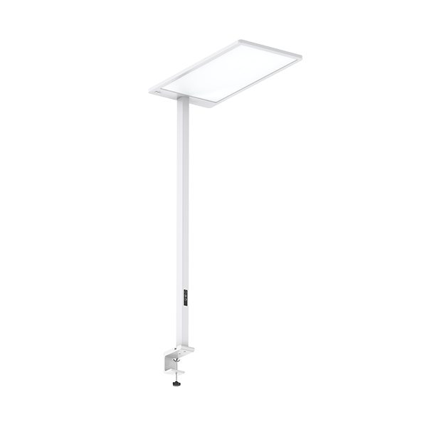 Diese praktische Tischleuchte TABLE besteht aus zwei Komponenten: einem flachen Leuchtenkopf und einem kurzen Leuchtenmast mit Tischbefestigung. Dank eines präzisen optischen Designs wird eine gleichmässige und besonders angenehme Ausleuchtung gewährleistet. Der sehr tiefe Blendwert UGR < 14 sowie die Lichtverteilung (75 % indirekt nach oben & 25 % direkt nach unten) zeichnen sie zur perfekten Büroleuchte aus.